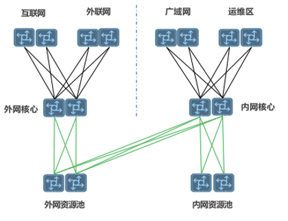 内网核心承载的流量范围:广域网、运维区、内网资源池等业务区域