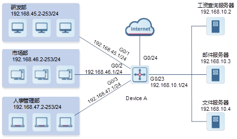 DeviceA(config-if-GigabitEthernet 0/24)# exit